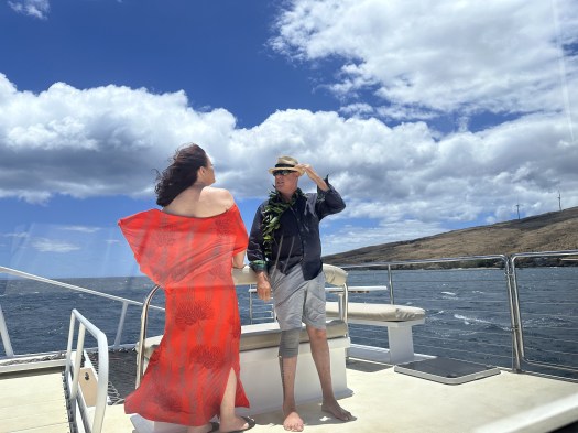 A second break for our host and guests to jump into the water and snorkel for a bit is followed by another song on the deck of the catamaran and some more of the interview. As the episode wraps up we see our host and guests enjoying the wonderful sail back into Maalaea Harbor.